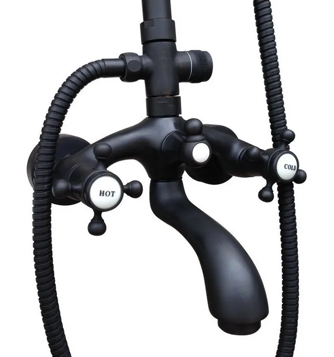 BEST SELLER Black Oil Rubbed Brass Dual Cross Handles Bathroom 8 Inch Round Rain Shower Faucet Set Bath Tub Mix