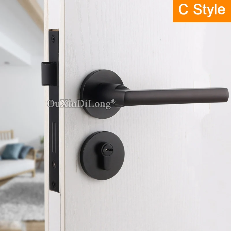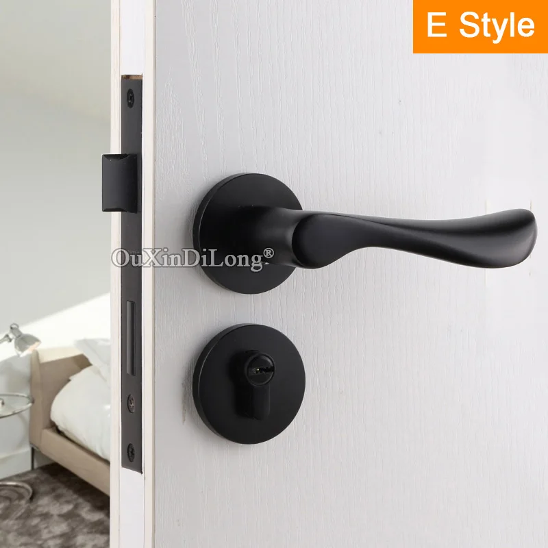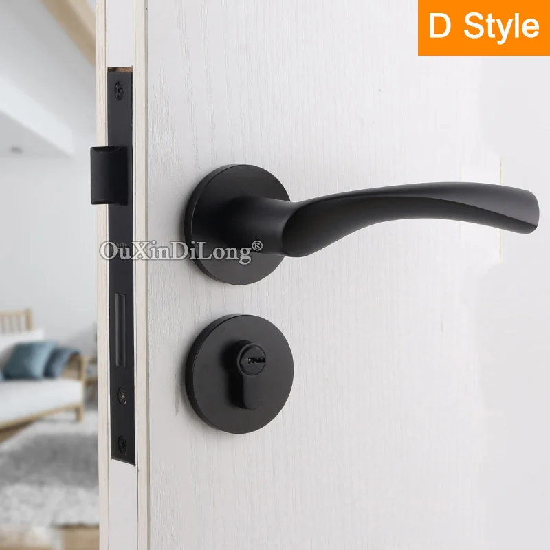 TOP European Black Mute Mortise Door Lock Set Interior Entry Solid Wooden Silent Door Lever Lock for Li