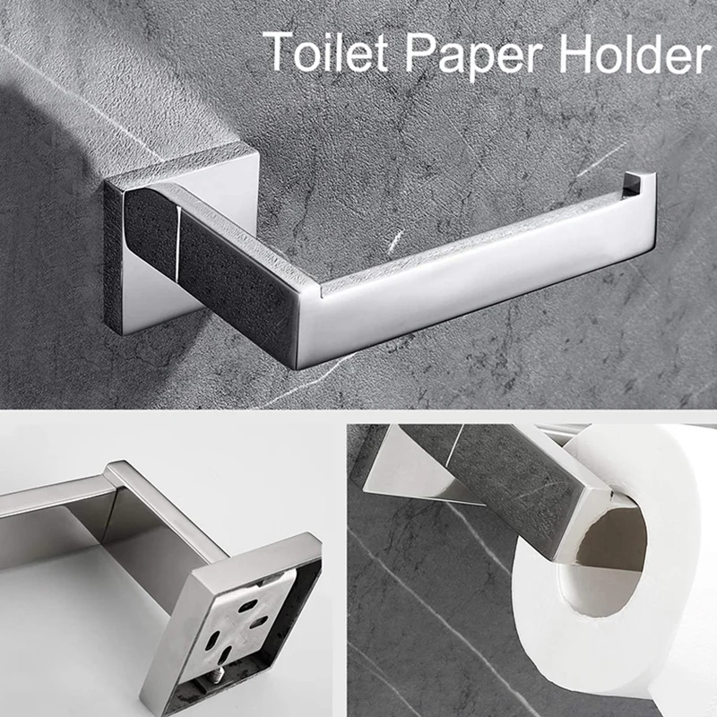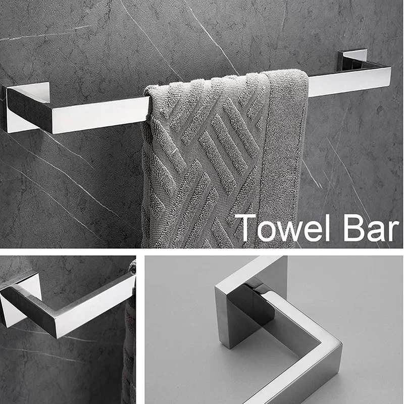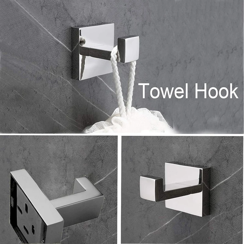 Chrome Bathroom Hardware Accessory Set Including Towel Bar Toilet Paper Holder Towel Holder Robe Ho