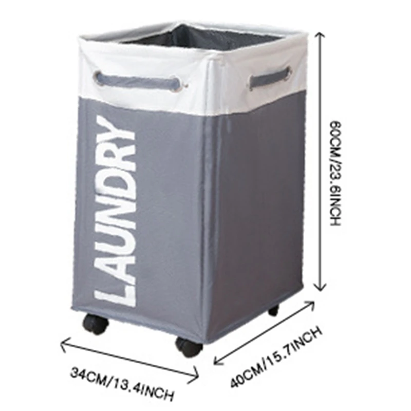 Dirty Clothes Laundry Basket Foldable Storage Basket with Wheel for Office Waterproof Oxford Bathro