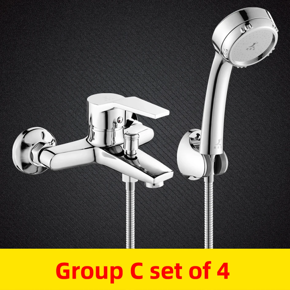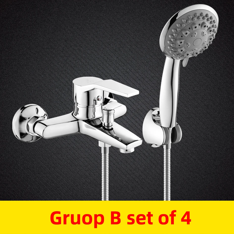 Bathtub Shower Faucet for cold hot water Bathroom Mixing Valve Brass Showering Tap Group of 4 Hose