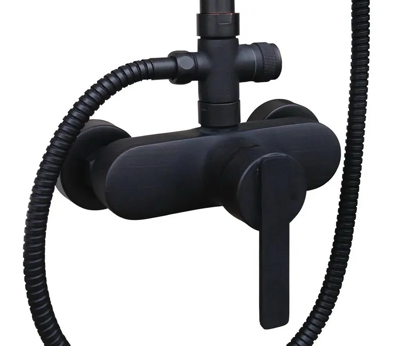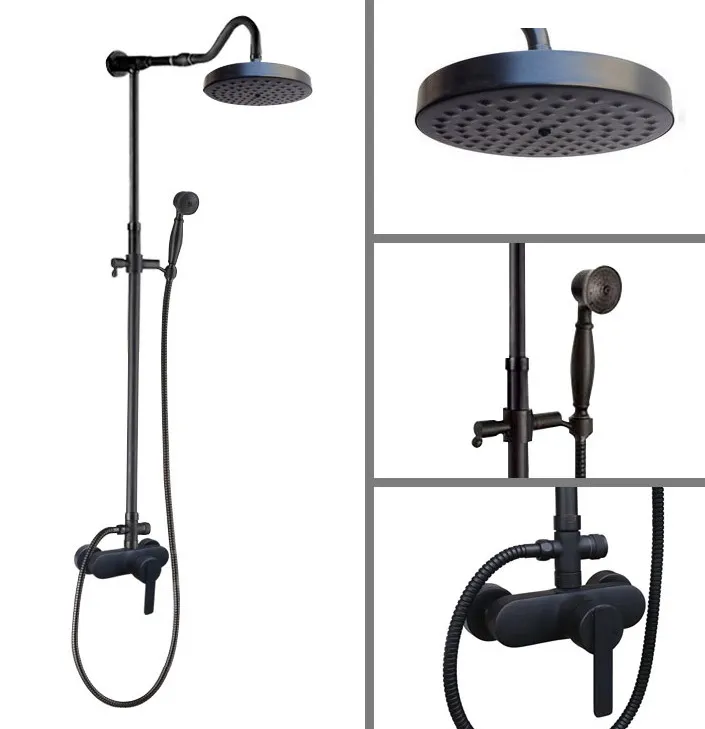 Black Oil Rubbed Brass Single Handle Bathroom 8 Inch Round Rain Shower Faucet Set Bath Mixer Tap Ha