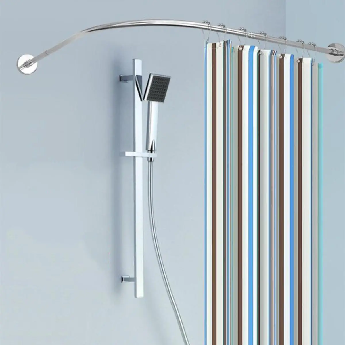 Extendable Curved Shower Curtain Rod U Shaped 201 Stainless Steel Shower Curtain Poles Punch-Free B