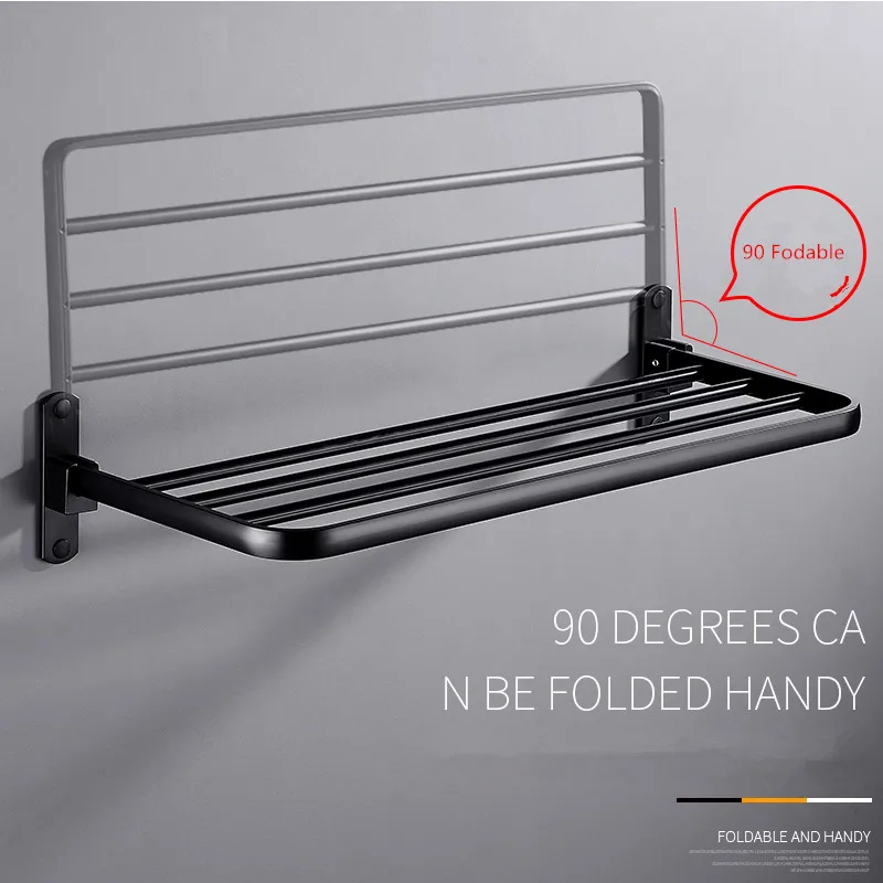 HOT Sale Folding Bathroom Towel Rack Black/White Aluminum Movable Bath Towel Holder 40/50/60 CM Bath Shelves