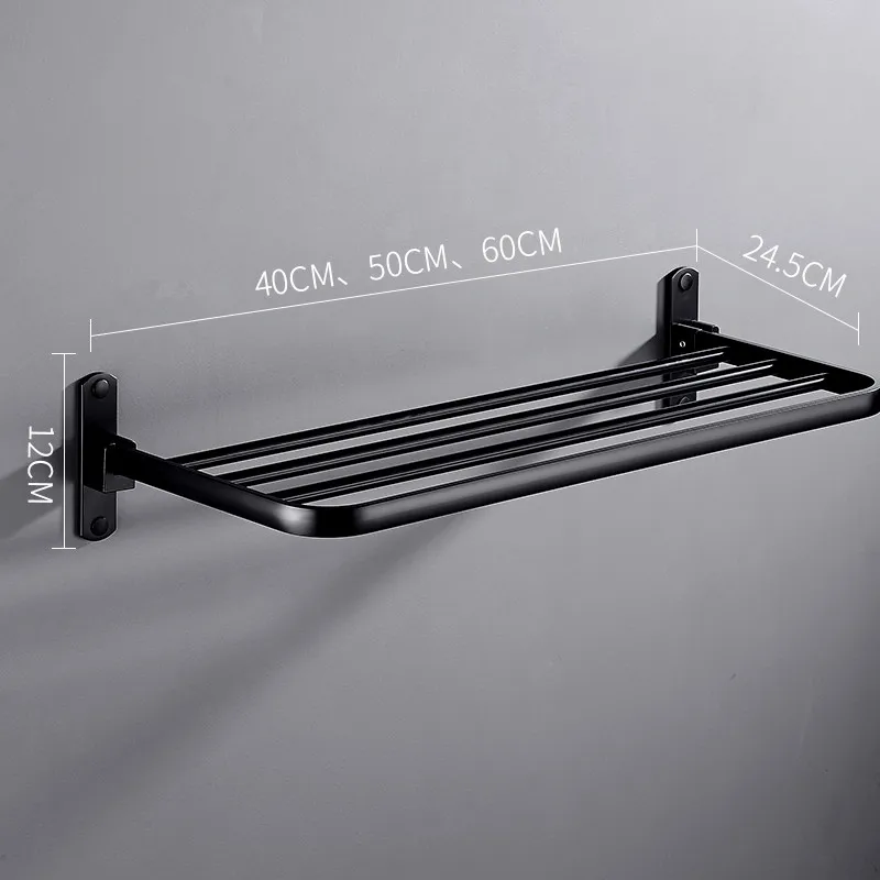 Folding Bathroom Towel Rack Black/White Aluminum Movable Bath Towel Holder 40/50/60 CM Bath Shelves