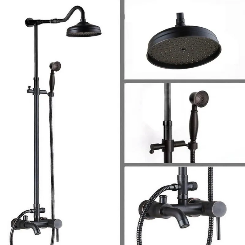 HOT Sale Black Oil Rubbed Brass Single Handle Bathroom Rainfall Rain Shower Head Faucet Set Mixer Tap Wall M